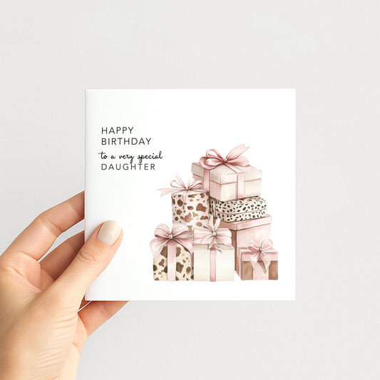 Daughter Birthday Card - Personalised Watercolour Gift Box Greeting Card