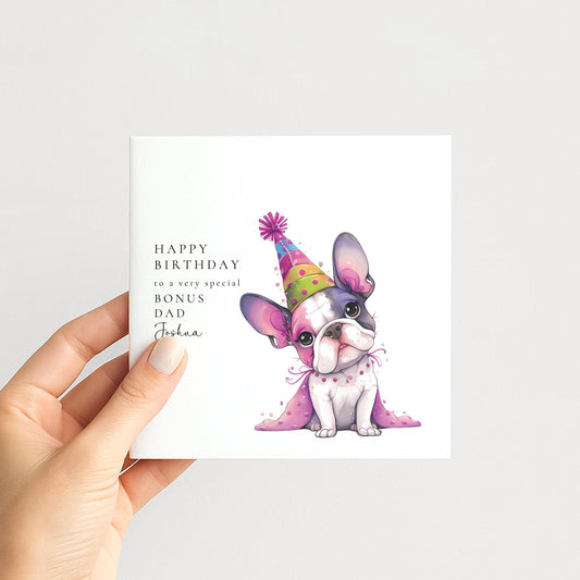 Bonus Dad Birthday Card – Personalised Name, Cute Dog Illustration & Matte Finish