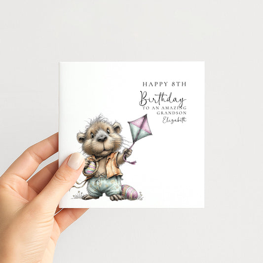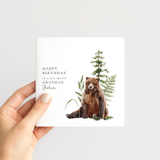 Grandad Birthday Card - Personalised Woodland Bear Card With Custom Name