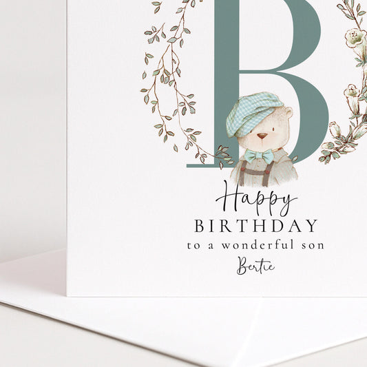 Son Birthday Card – Personalised Name & Bear Illustration | Matte Finish