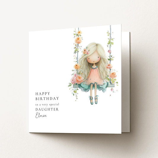 Birthday Card Daughter - Personalised Floral Swing With Matte Finish