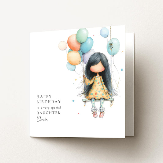 Birthday Card Daughter – Personalised Cute Girl Balloon Card With Envelope Included