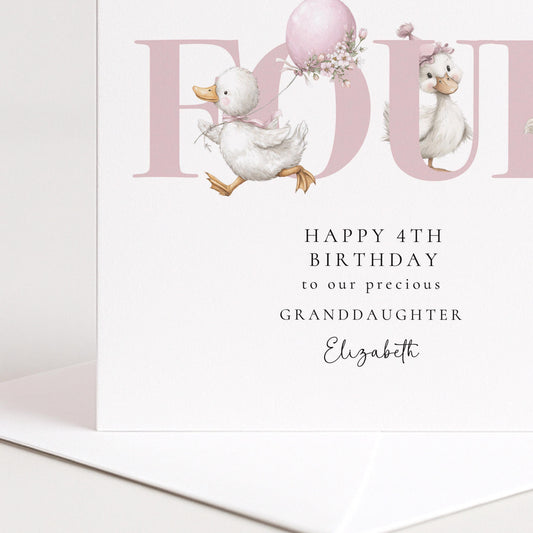 4th Birthday Card Granddaughter – Personalised Kids Card With Ducks & Pastel Design