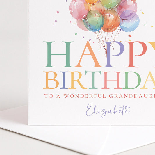 Granddaughter Birthday Card - Personalised Keepsake With Colourful Balloons & Matte Finish