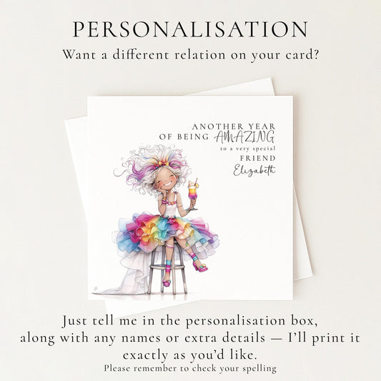 Funny Birthday Card - Colourful Personalised Card For Friend With Joyful Wishes