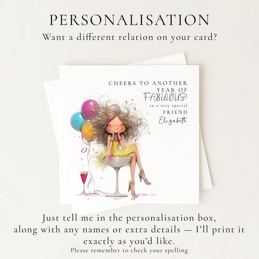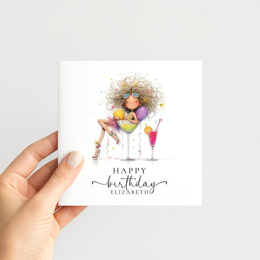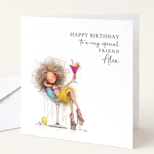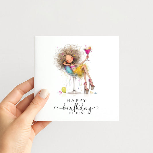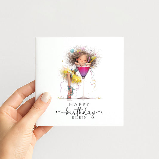 Personalised Birthday Card - Glam Cocktail Party Girl Design With Envelope