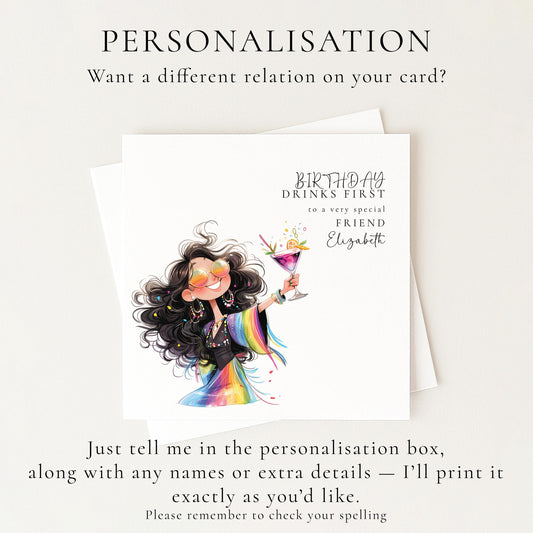 Personalised Birthday Card | Colourful Cocktail Design for Her Celebration