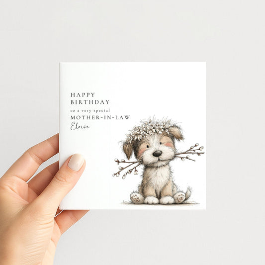 Mother In Law Birthday Card – Personalised Floral Animal Design With Custom Name