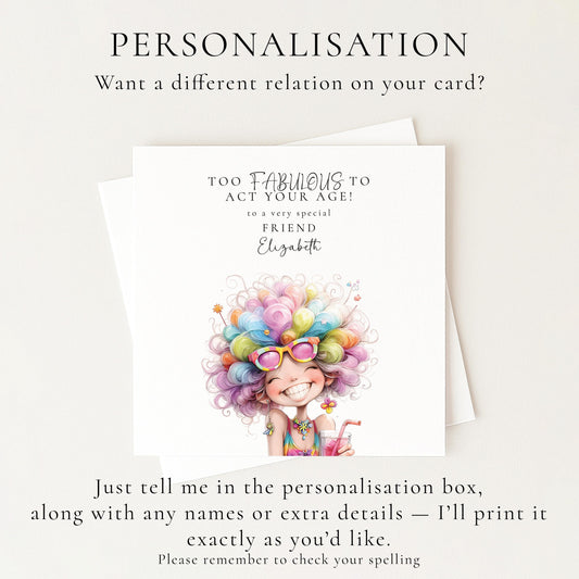 Funny Birthday Card - Too Fabulous Friend Personalised Colourful Greeting