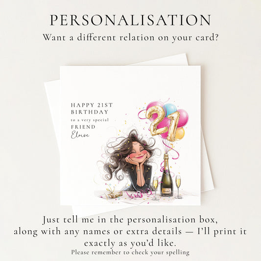 21st Birthday Card – Personalised Friend Keepsake With Balloons & Champagne