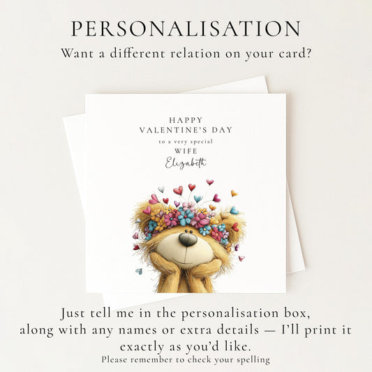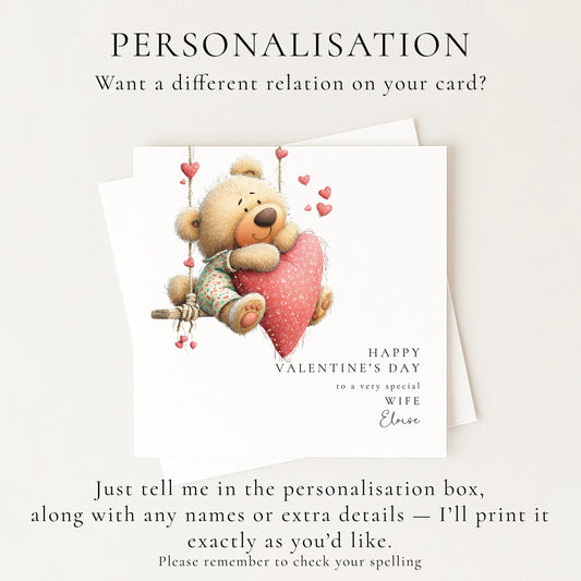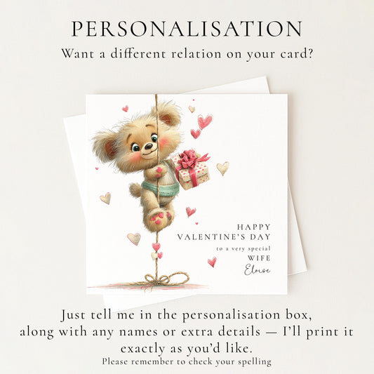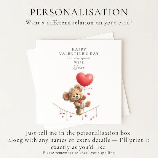 Valentine's Day Card - Personalised Cute Bear Valentine for Wife - Romantic Keepsake Gift