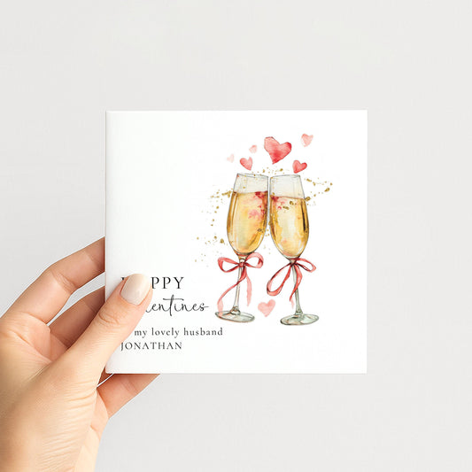 Valentines Card Husband - Personalised Romantic Champagne Theme With Heart Design