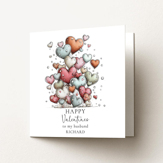 Valentines Card Husband - Personalised Romantic Valentine Card With Soft Pastel Hearts