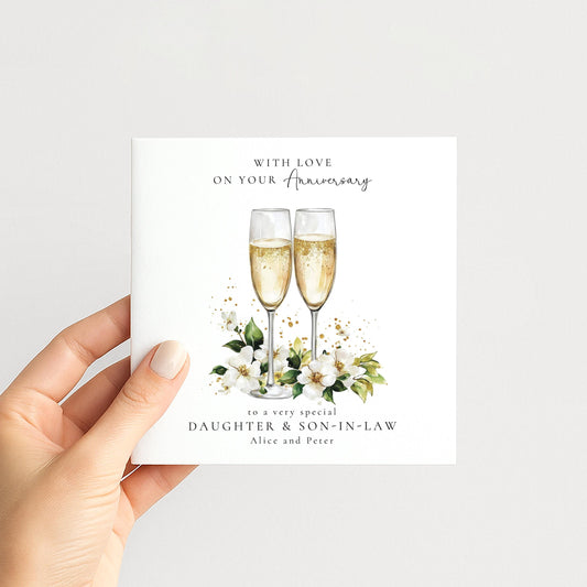 Anniversary Card Daughter Son In Law – Personalised Wedding Champagne Flute Design