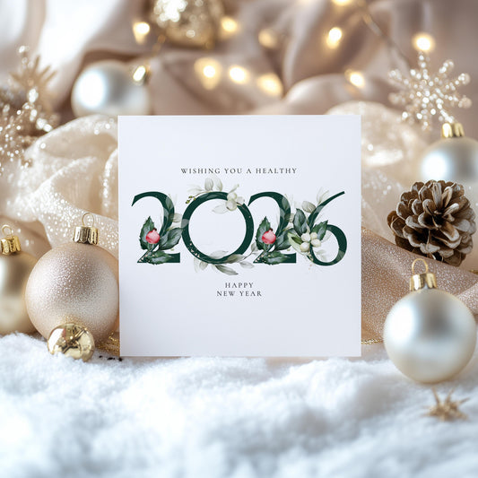 2026 New Year Card – Personalised Floral New Year Greeting With Matte Finish
