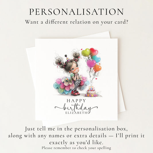 Personalised Girl Birthday Card – Custom Name Keepsake With Balloons