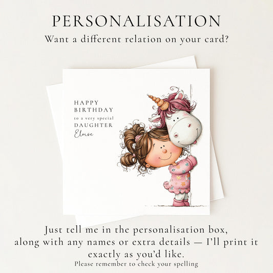 Birthday Card Daughter – Personalised Cute Unicorn Card With Sweet Message