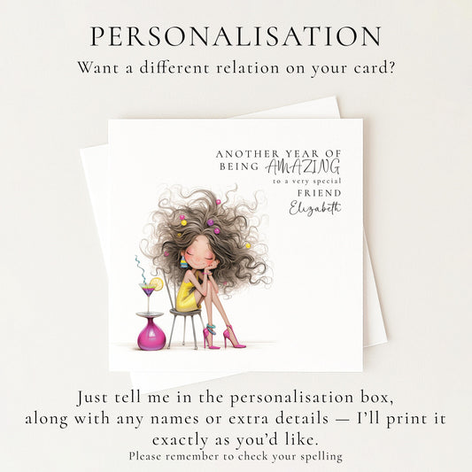 Funny Birthday Card - Stylish Elegant Birthday Card for Friend, Personalised Option