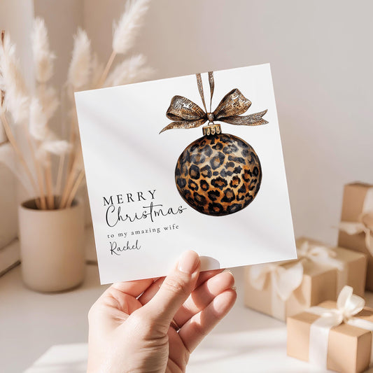 Christmas Card For Wife – Personalised Leopard Print Elegant Holiday Greeting