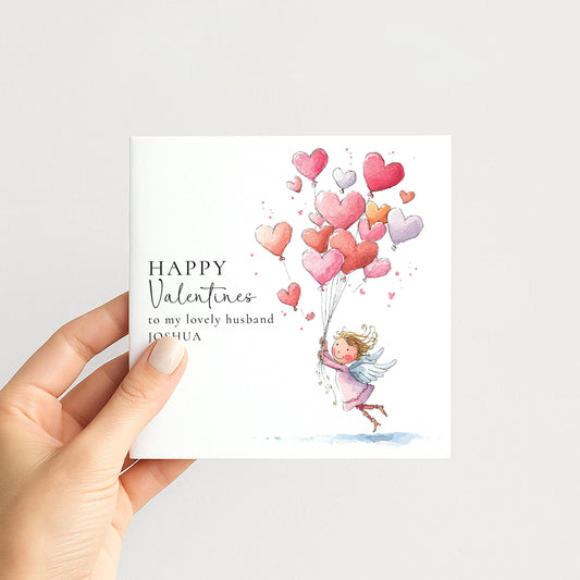 Valentine’s Card For Husband - Personalised Romantic Love Card With Floating Heart Balloons