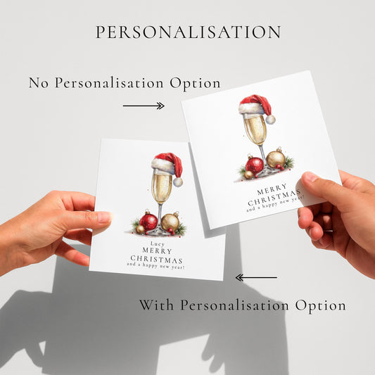 Personalised Christmas Card – Elegant Prosecco Glass Design With Santa Hat