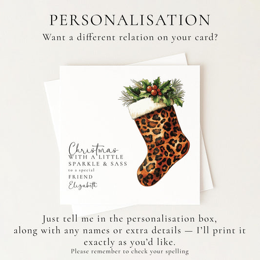 Christmas Card For Friend - Personalised Leopard Print Card | Sparkle & Sass