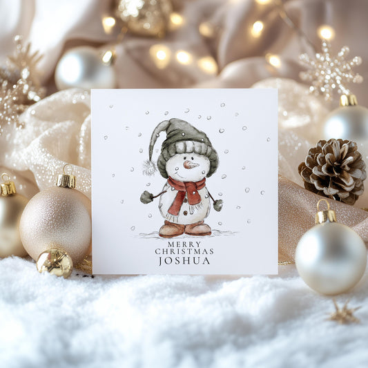Personalised Snowman Card – Custom Name Christmas Greeting Card With Matte Finish