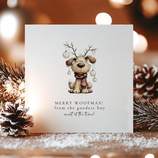 Funny Dog Christmas Card – Personalised Cute Holiday Greeting Card by Whimsi Lilley