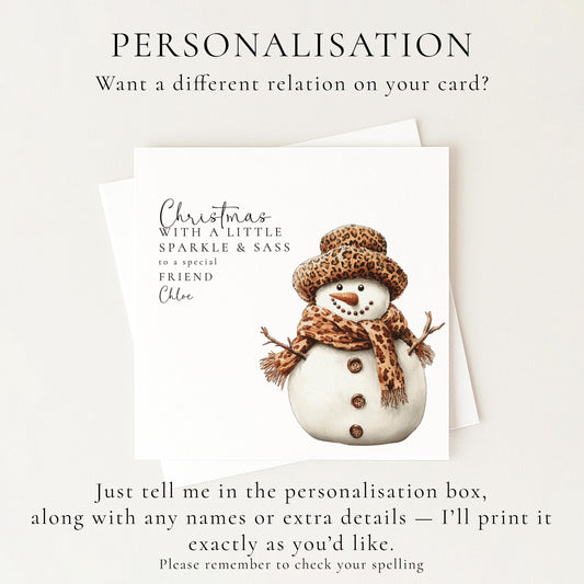 Personalised Leopard Snowman Card - Stylish Christmas Greeting Card With Matte Finish