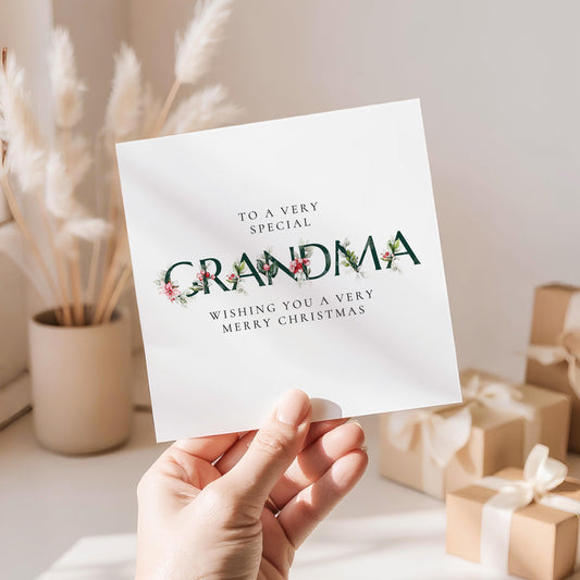 Grandma Christmas Card – Elegant Floral Holiday Card With Soft Matte Finish