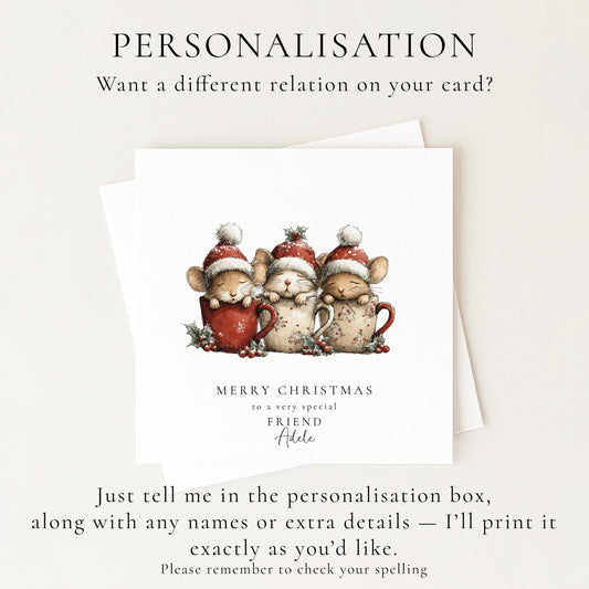 Friend Christmas Card – Personalised Xmas Card With Cute Mice Design & Matte Finish