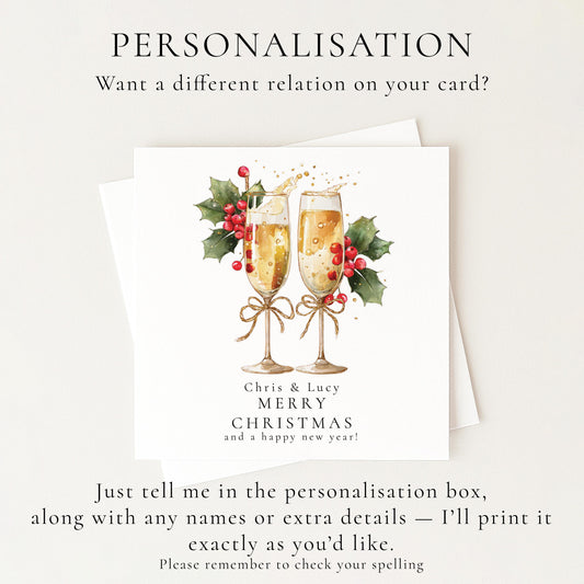 Couples Christmas Card - Personalised Festive Prosecco Card With Holly Berries