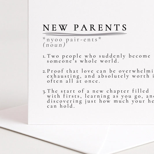 New Parents Card | Modern Baby Card Design – Neutral, Softly Worded Keepsake