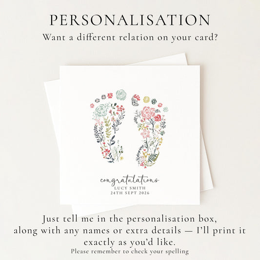 New Baby Card – Personalised Baby Shower Card With Delicate Footprints
